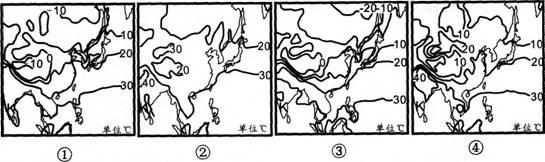 读亚洲部分地区四个季度平均气温分布图,回答20~21题。 据图中气温分布状况判断,四幅图由第一季度到第四季度的正确排序是( )。查看材料