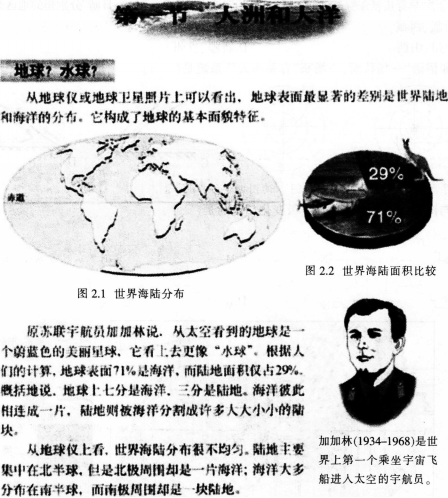 材料一《义务教育地理课程标准(2011年版)》的内容标准要求“运用地图和数据,说出地球表面海、陆所占比例,描述海陆分布特点”“运用世界地图说出七大洲、四大洋的分布。”