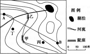 下图为某山地的局部等高线图(单位:米),等高距为20米,AB为空中索道。读图完成题。 图中有一瀑布,瀑布和选择观赏的位置分别是( )。查看材料