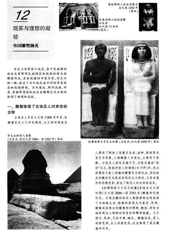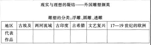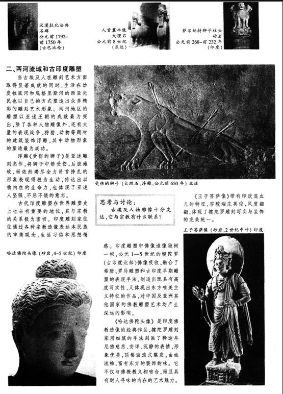 【教学难点】领会不同民族雕塑和特定的宗教、审美观念、生活习俗的联系。