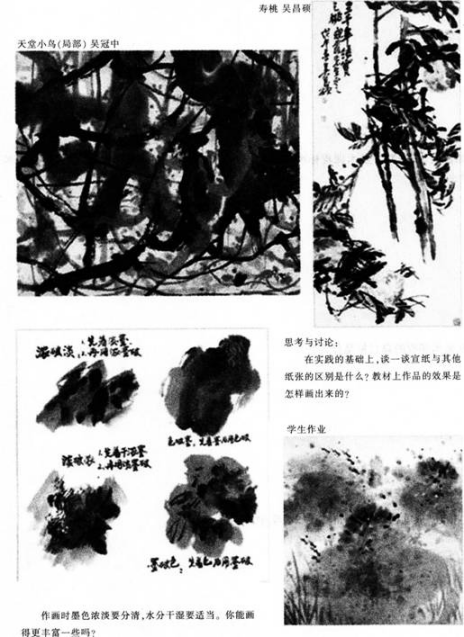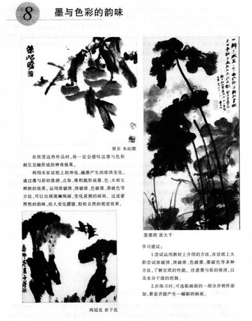 根据提供的教材图片:(1)设计《墨与彩的韵味》一课的教学方案,写出一篇教学简案;