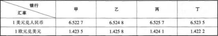 <p>张某有5万美元,他决定将其中2万美元换成人民币,3万美元换成欧元,根据下表四家银行提供的当天外汇报价,张某应选择的银行分别