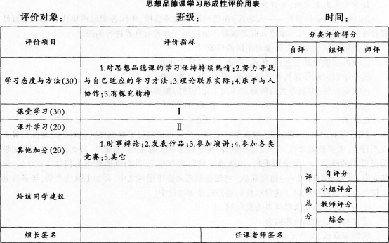 (2)结合上表,说明思想品德课开展形成性评价的意义。