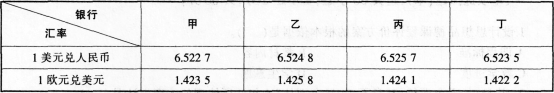张某有5万美元,他决定将其中2万美元换成人民币,3万美元换成欧元,根据下表四家银行提供的当天外汇报价,张某应选择的银行分别是()。