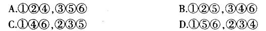 <p>把下面的六个图形分为两类,使每一类图形都有各自的共同特征或规律,分类正确的一项是: <img alt="" src="h