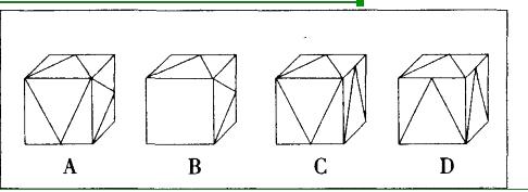 左边给定的是纸盒的外表面,下面哪一项能由它折叠而成?