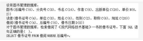 D.(SELECT借书证号FROM图书WHERE书名=“现代网络技术基础”)