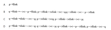 双向链表中有两个指针域llink和rlink,分别指向前驱和后继,设β指向表中的一个结点,q指向一待插入结点,现要求在p前插入q,则正确的插人为()。
