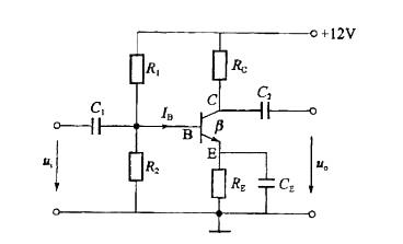 如图所示电路中,R1=50kΩ,R2=10kΩ,RE=1kΩ,RC=5kΩ,晶体管的β=60,静态UBE=0.7V。静态基极电流IB等于()mA。 A.0.0152mA