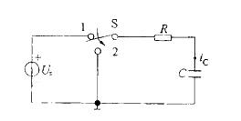 图示电路当开关S在位置“1”时已达稳定状态。在t=0时刻将开关S瞬间合到位置“2”,则在t>0后电流ie应:
