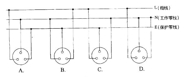 中性点接地的三相五线制电路中,所有单相电气设备电源插座的正确接线是图中的哪个图示接线?