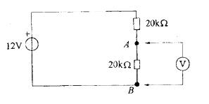 在图示的电路中,用量程为10V、内阻为20kΩ/V级的直流电压表,测得 A、B两点间的电压UAB为: