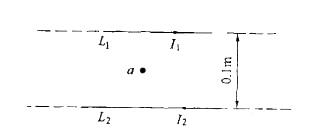 B.a点位于L1、L2之间的中点,且与两导线在同一平面内,如图所示,a点的磁感应强度为: