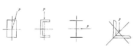 悬臂梁在自由端受集中力P作用,横截面形状和力P的作用线如图所示,其中产生斜弯曲与扭转组合变形的是哪种截面?