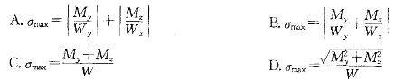 矩形截面梁在形心主惯性平面(xy平面、xz平面)内分别发生平面弯曲,若梁中某截面上的弯矩分别为Mx和My,则该截面上的最大正应力为: