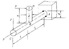 图示钢制竖直杆DB与水平杆AC刚接于