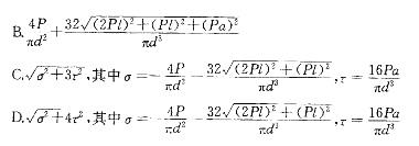 A.A端固定,P、l、a与圆截面杆直径d为已知。按第三强度理论,相当应力σr3为: