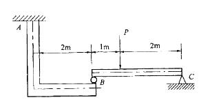 结构如图,折杆AB与直杆BC的横截面面积为A=42cm2,Wy=Wz=420cm3,[σ]=100MPa,则此结构的许可荷载[P]为: