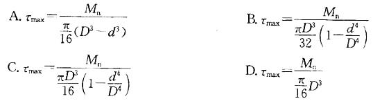 空心截面圆轴,其外径为D,内径为d,某横截面上的扭矩为Mn,则该截面上的最大剪应力为:
