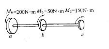 等截面传动轴,轴上安装a、b、c三个齿轮,其上的外力偶矩的大小和转向一定,如图示。但齿轮的位置可以调换。 从受力的观点来看,齿轮a的位置应放置在下列中何处?