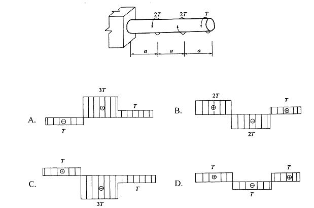 圆轴受力如图。下面4个扭矩图中正确的是: