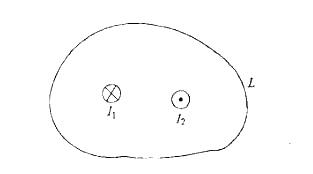 如图所示,两长直导线的电流I1=I2,L是包围I1、I2的闭合曲线,以下说法中正确的是哪一个?