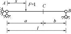 如图所示的简支梁,当单位荷载F=1在其AC段上移动时,弯矩Mc的影响线方程为( )。
