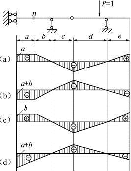图所示静定梁中,截面n的弯矩影响线为( )。