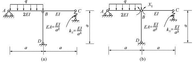 <p>图中,用力法求解图(a)所示结构,取图(b)所示力法基本体系,则力法典型方程δ11X1+Δ1p=0中的Δ1P之值为( )