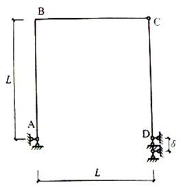 <p>图示刚架,EI为常数,忽略轴向变形。当D支座发生支座沉降时,B点转角为( )。 <img alt="" src="