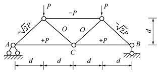 设各杆的EA值相同,在图所示的桁架中,节点C的竖向位移为( )。
