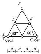 如图所示的桁架,EA=常数, D、E两点的相对水平位移为( )。 A、0 B、0.97Fa/(E A)(→←)