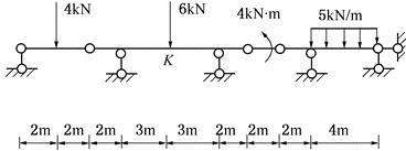 <p>如图所示的多跨静定梁,截面K的弯矩(以下侧受拉为正)Mk为( )kN·m。 <img alt="" src="http