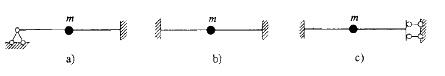 图示三种单自由度动力体系中,质量m均在杆件中点,各杆EI、l相同。其自振频率的大小排列次序为: