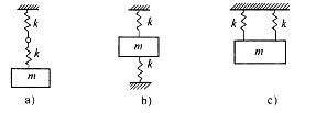 图示三种体系的弹簧刚度均相同,则其自振频率的关系为: