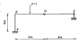 图示结构MA影响线(P=1在BE上移动,MA右侧受拉为正)在 B、D两点纵标(单位:m)分别为: