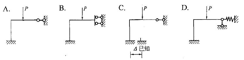 <p>图示四个图中,不能直接用力矩分配法计算的是哪个图示结构? <img alt="" src="https://learnf