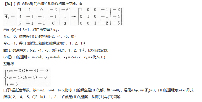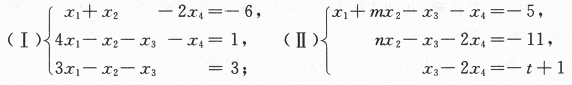 (1)求解方程组(Ⅰ),用其导出组的基础解系表示通解. (2)当方程组中的参数m,n,t为何值时,方程组(Ⅰ)与(Ⅱ)同解.