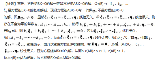 设A是m×s阶矩阵,.B是s×n阶矩阵,且r(B)=r(AB).证明:方程组BX=0与ABX=0是同解方程组.