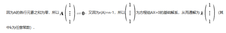 设A为n阶矩阵,A的各行元素之和为0且r(A)=n-1,则方程组AX=0的通解为_______.