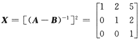 【解】化简矩阵方程,有AX(A-B)+BX(B-A)=E,即(A-B)X(A-B)=E. 由于,所以矩阵A-B可逆,且于是.