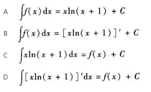 <p>设f(x)的一个原函数为xln(x+l),则下列等式成立的是().《》() <img alt="" src="https