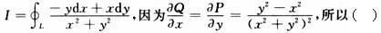 B.在L为不含原点在内的闭区域的边界线时I=0