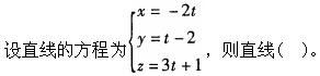 A.过点(0,-2,1),方向向量为2i-j-3k