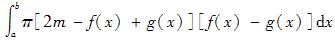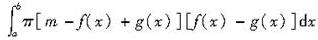 设f(x)、g(x)在区间[a,b]上连续,且g(x)<f(x)<m(m为常数),由曲线y=g(x),y=f(x),x=a及x=b所围平面图形绕直线y=m旋转而成的旋转体体积为()。