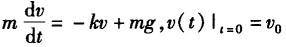 将质量为m的物体在空气中竖直上抛,初速度为vo,若空气阻力与物体的速度V(t)(t是时间)成正比,比例系数为k,g为重力加速度.V(t)所满足的微分方程及初始条件是().