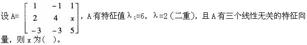 已知4阶矩阵A~ B,A的特征值为3,4,5,6,E为4阶单位矩阵,则|B-E|=()