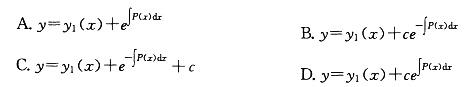 <p>若y1(x)是线性非齐次方程y'+p(x)y=Q(x)的一个特解,则该方程的通解是下列中哪一个方程? <img alt=