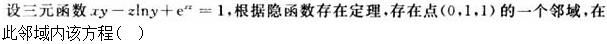 D.可确定两个具有连续偏导数的隐函数x=x(y,z)和y=y(x,z)