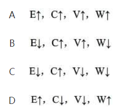 一空气平行板电容器充电后与电源断开,然后在两极板间充满某种各向同性均匀电介质,则电场强度E、电容C、电压V和电场能量W四个量各白与充入电介质前相比较,增大(↑)或减小(↓)的情况为()
